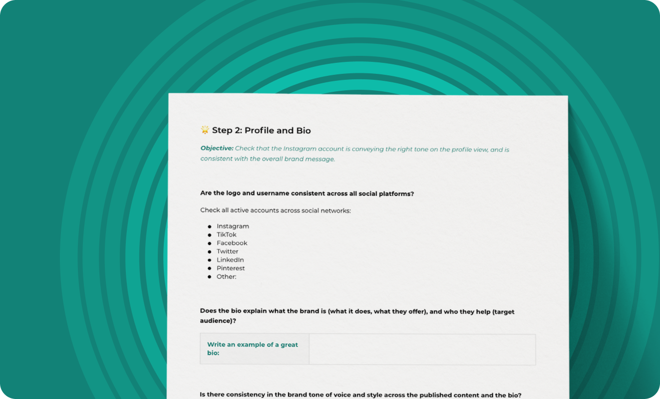 Stop wasting time on overwhelming audits. This interactive template is designed for agency speed, helping you focus on the metrics and goals that genuinely matter. Quickly review the account’s goals, content strategy, community engagement, and more to deliver an informed strategy that exceeds client expectations.