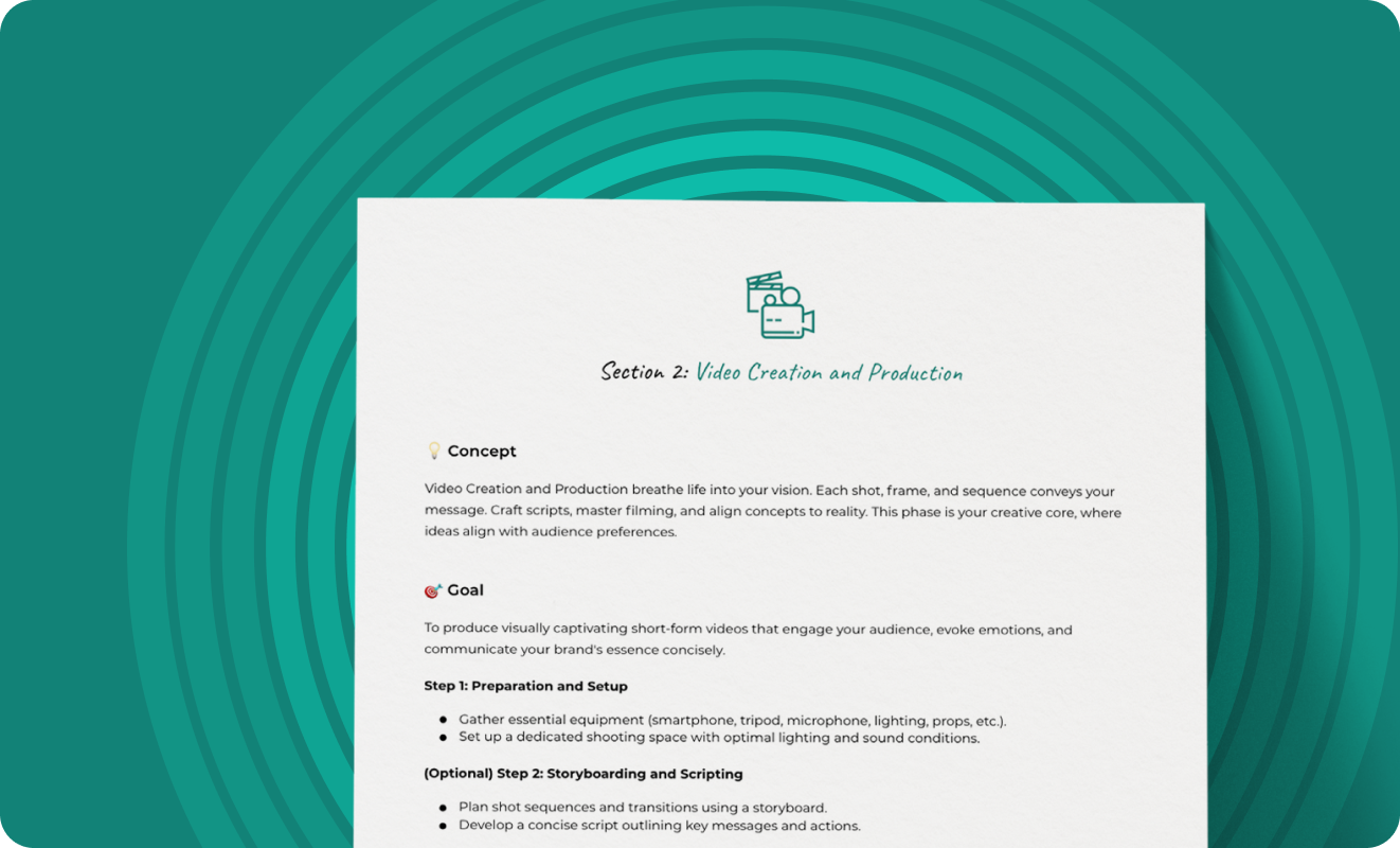 A great video starts with a great concept. Use the checklist to ensure your idea aligns with your target audience, includes a strong hook, and serves a clear purpose before you even start filming.